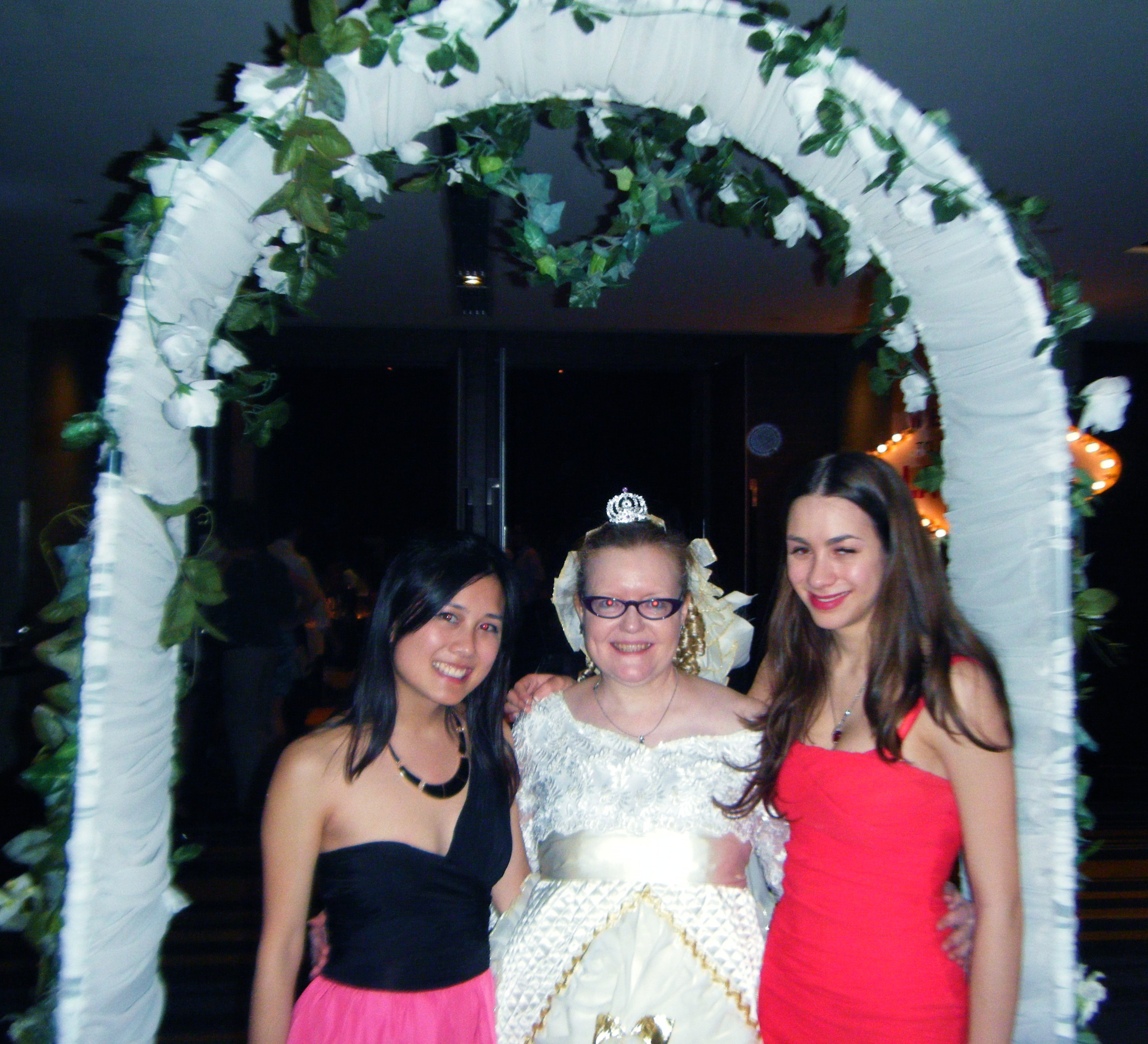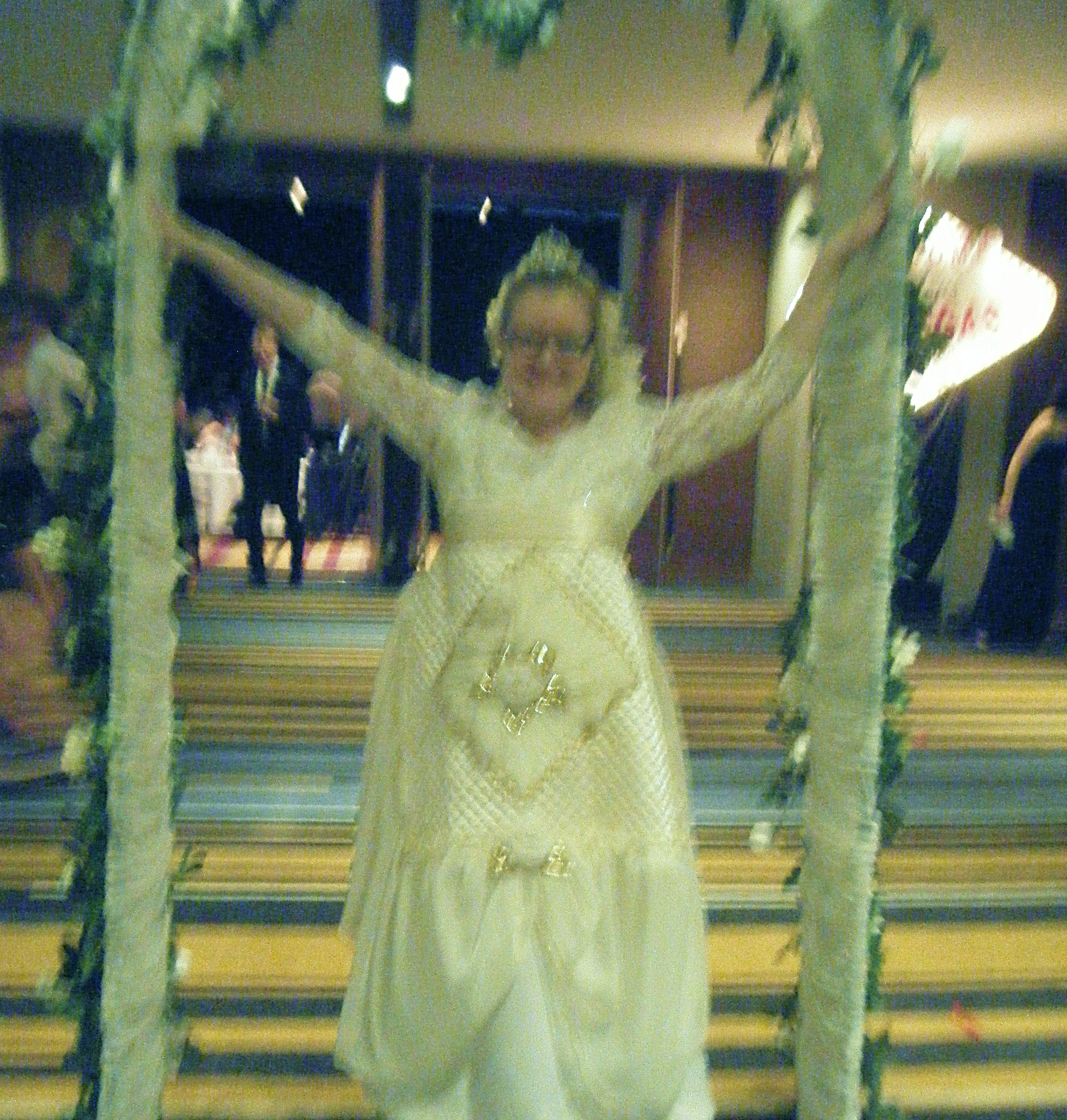Was furiously constructing an outfit for a Las Vegas theme at Law Ball. Bought 3-4 pieces total cos of $43. Wedding dress $35 and a bed quilt for $6. Scarf was $2. Scissors and hot glue gun action. Made it while listening to four weeks’ of Q&A. Peter Jensen is like a hard-core Anglican version of Dick Smith.
