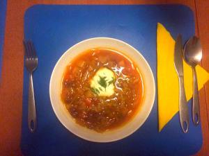 Went to a Eurovision slumber party with scavenger hunt and bingo at Louise’s place. Started on Saturday night, watching the second semi-final, while Louise cooked delicious Ukrainian dishes – borscht soup and Chicken Kiev – to honour this year’s host nation.